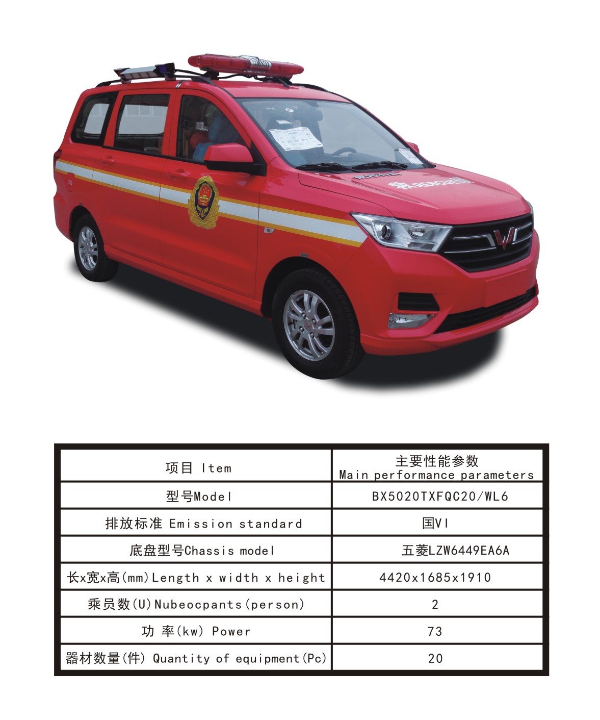 BX5020TXFQC20/WL6器材消防車